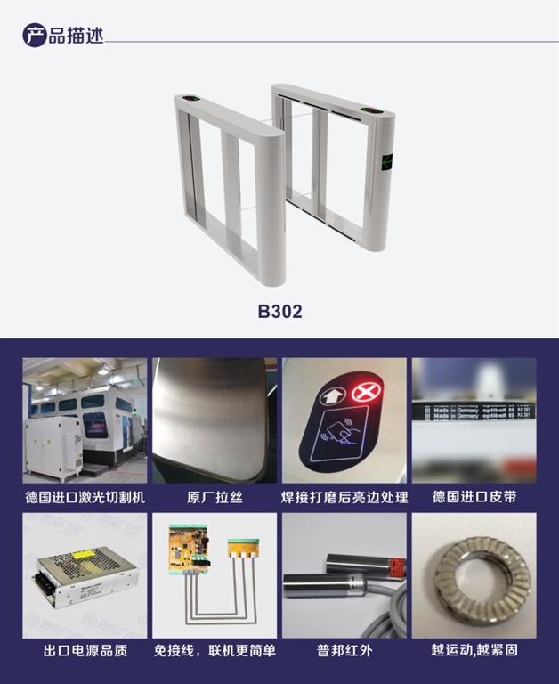 機場_速通門B302功能特點:進口304不銹鋼;箱體激光切割加工;精磨工藝.